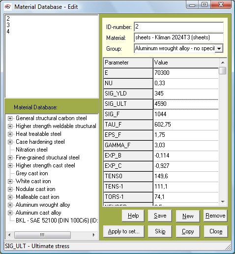 The material properties are defined within this dialogue. The material data can be also input through the Method dialogue, where only the properties necessary for that particular calculation method are shown.